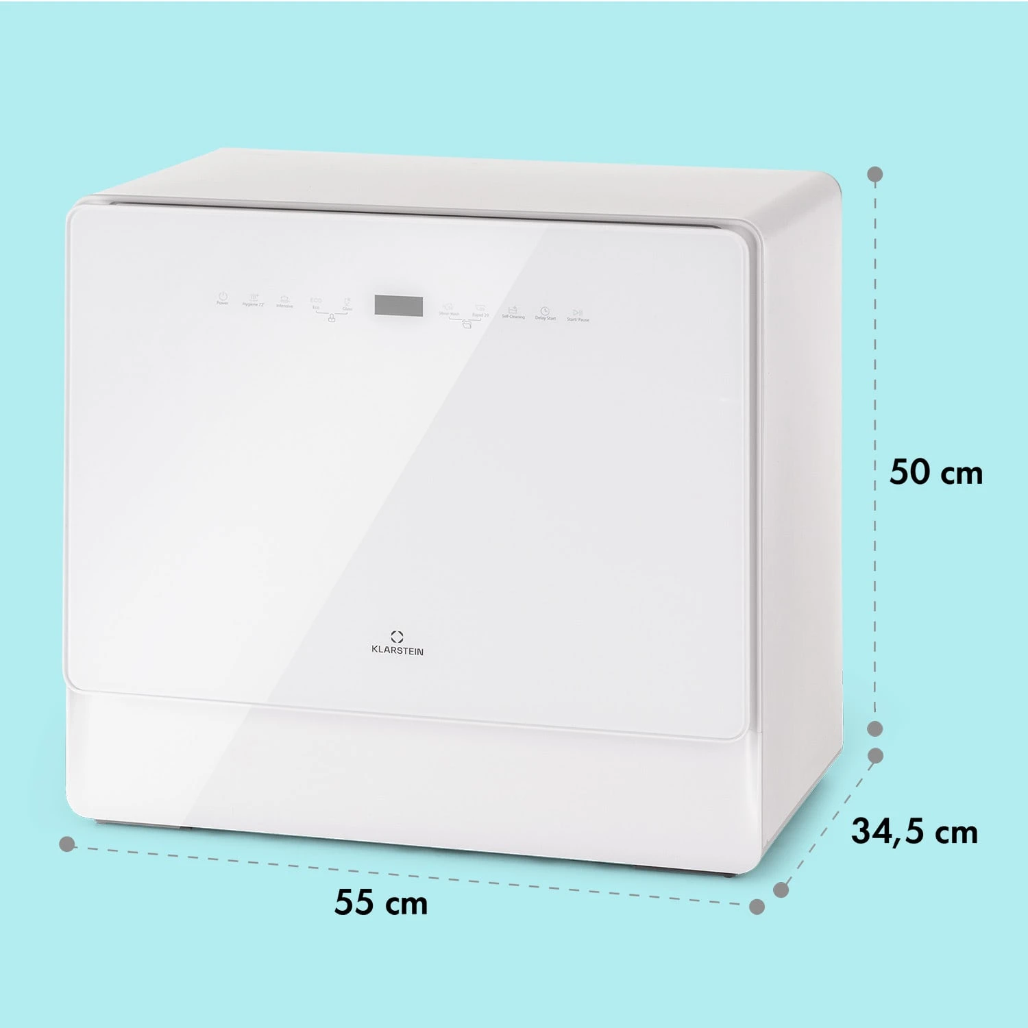 Die Klarstein Emerald 5 Slim Geschirrspülmaschine ist mit ihrer kompakten Größe und zahlreichen Programmen ideal zur Nutzung in kleinen Wohnungen geeignet! Das Touch-Bedienfeld ermöglicht dabei eine einfache Bedienung und sorgt für beste Übersicht. Mit 7 verschiedenen Programmen und nur ca. 8 Litern Wasserverbrauch pro Spülgang bringt die Emerald 5 Slim dein Geschirr und Besteck zuverlässig zum Glänzen. Ein besonders nützliches Feature ist das automatische Öffnen der Frontklappe nach dem Spülvorgang, so kann Wasserdampf entweichen und das Geschirr ist direkt schrankfertig.