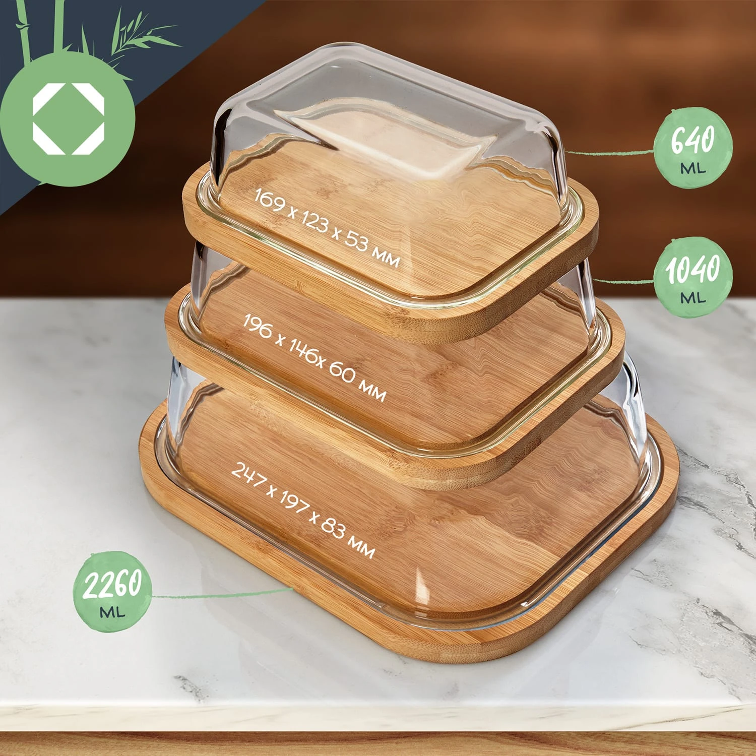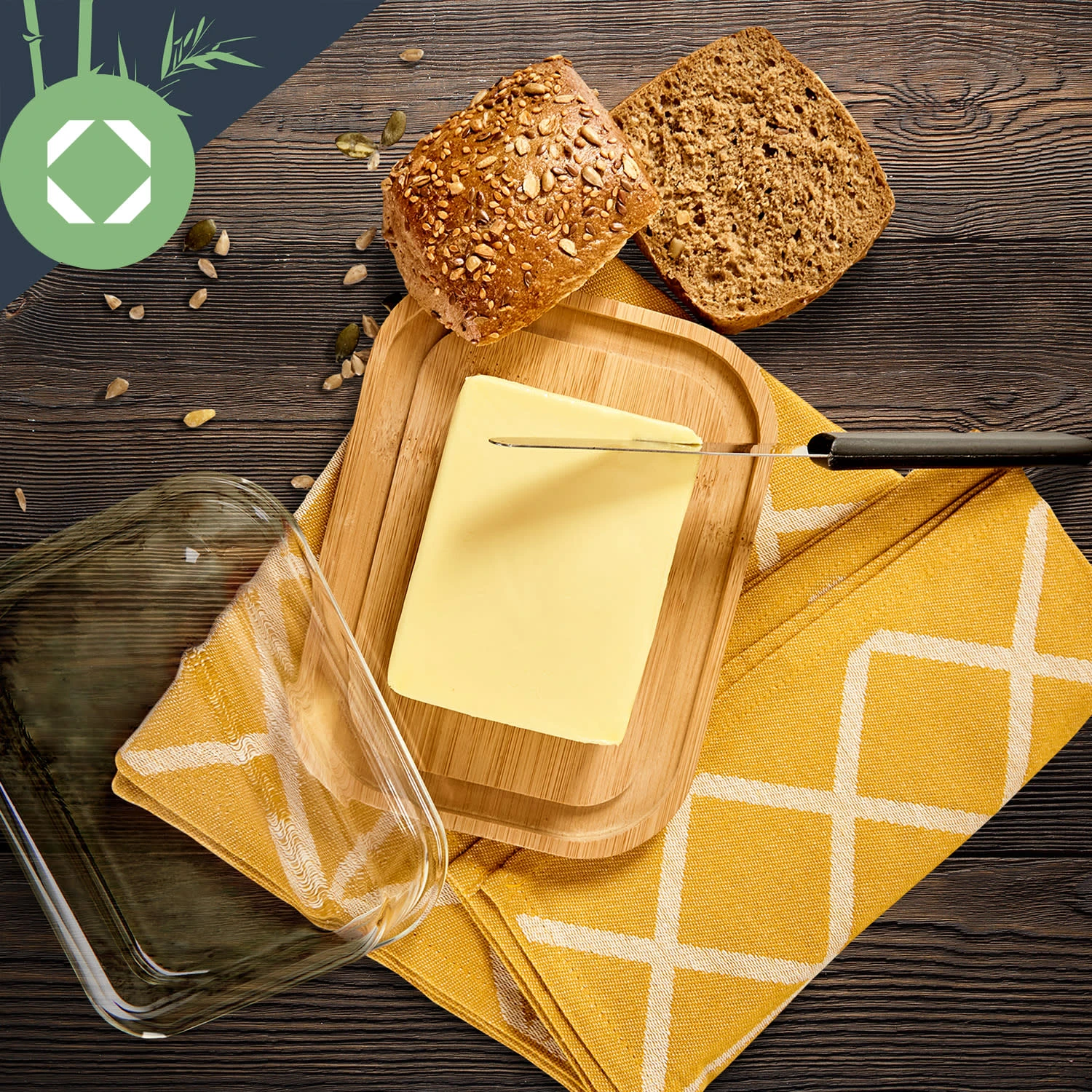 Glas-Butterdose Bambusboden Luftdicht Spülmaschinenfest