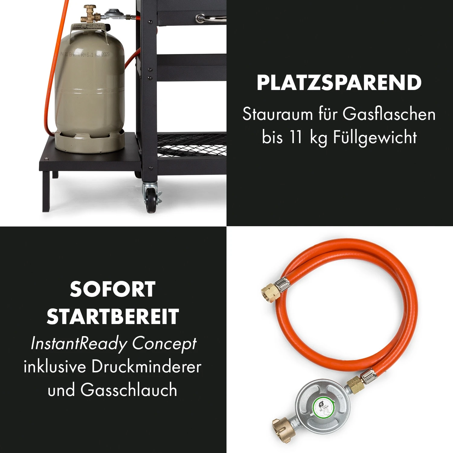 - Maße Grillfläche links/rechts: ca. 53 x 45 cm (BxT)