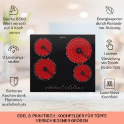 Virtuosa 3 Slim Kochfeld 3 Felder 5000 W Dualzone Timer Keramik