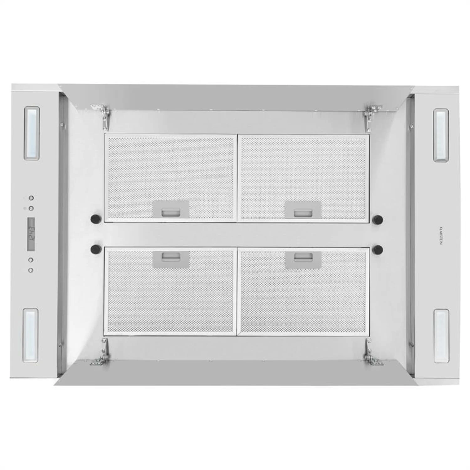 Diskret im Service – modern im Design. Aus besten Materialien gefertigt verrichtet die Deckenhaube ihre Arbeit nicht nur effizient, sondern auch mit Stil. Aus rostfreiem Edelstahl mit integrierter Beleuchtung wacht sie von der Decke und saugt mit unsichtbarer Kraft bedrohliche Rauchschwaden und aufdringliche Dämpfe auf. Mit drei Leistungsstufen rückt die Klarstein Secret Service jedem Kochgeruch und Dampfaufkommen entgegen, maximal 800 m3/h stehen ihr dabei zur Verfügung. Gründliche Dienste verrichtet sie auf Wunsch auch im Nachlauf per eingestelltem Timer. Alle Service-Leistungen lassen sich entweder über die Armatur oder per Fernbedienung steuern. Die vier LED-Leuchten setzen die Dunstabzugshaube ins Licht und gewähren Köchen tiefe Einblicke.