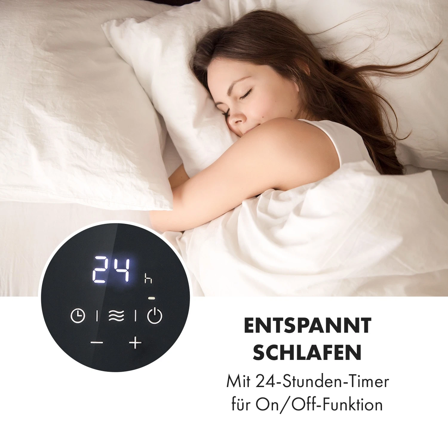 Dank eines 24-Stunden-Timers für das An- und Ausschalten kann man beruhigt und entspannt schlafen, während der Ölradiator noch in Betrieb ist: Er schaltet sich zuverlässig nach der gewählten Zeit selbst ab. Ein ebenfalls vorhandener ECO-Modus ermöglicht einen besonders sparsamen Betrieb. Für die mobile Nutzung sorgen das geringe Gewicht und 4 Bodenrollen, mit denen die Elektroheizung ganz einfach ihren Standort wechseln kann. Und dank der mitgelieferten Fernbedienung kann die Steuerung aus ganz bequem von der Couch aus vorgenommen werden.